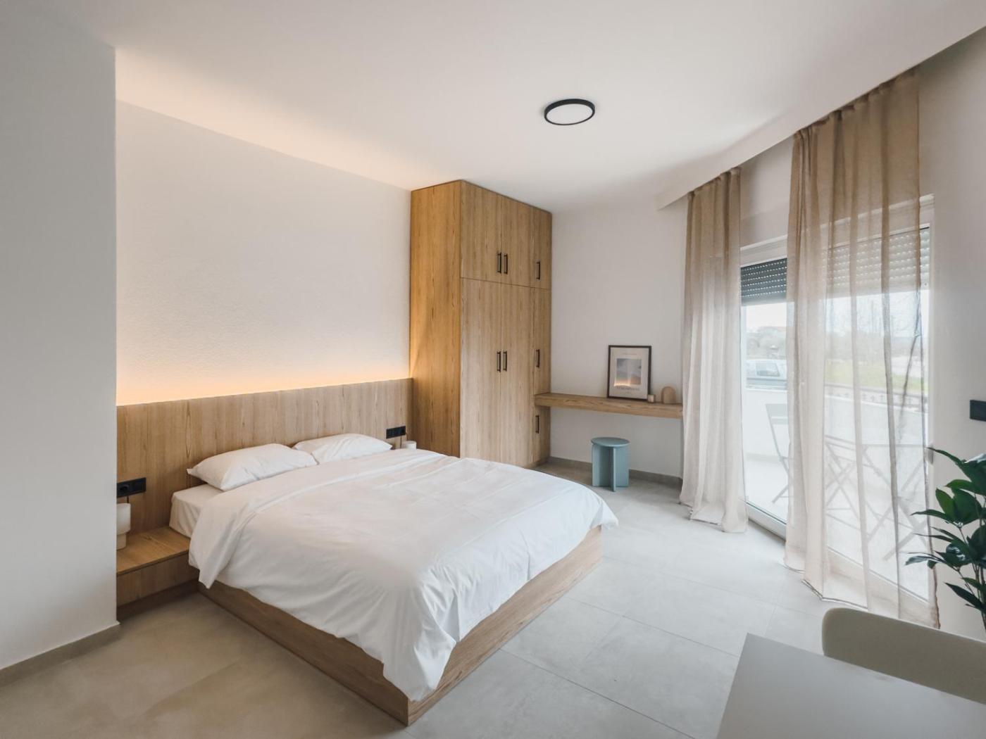 Deluxe Double Room. Guests can make meals in the kitchenette that comes with a stovetop, a refrigerator, kitchenware and a tea and coffee maker. The double room provides air conditioning, a washing machine, a balcony with sea views as well as a private bathroom featuring a walk-in shower. The unit offers 1 bed.