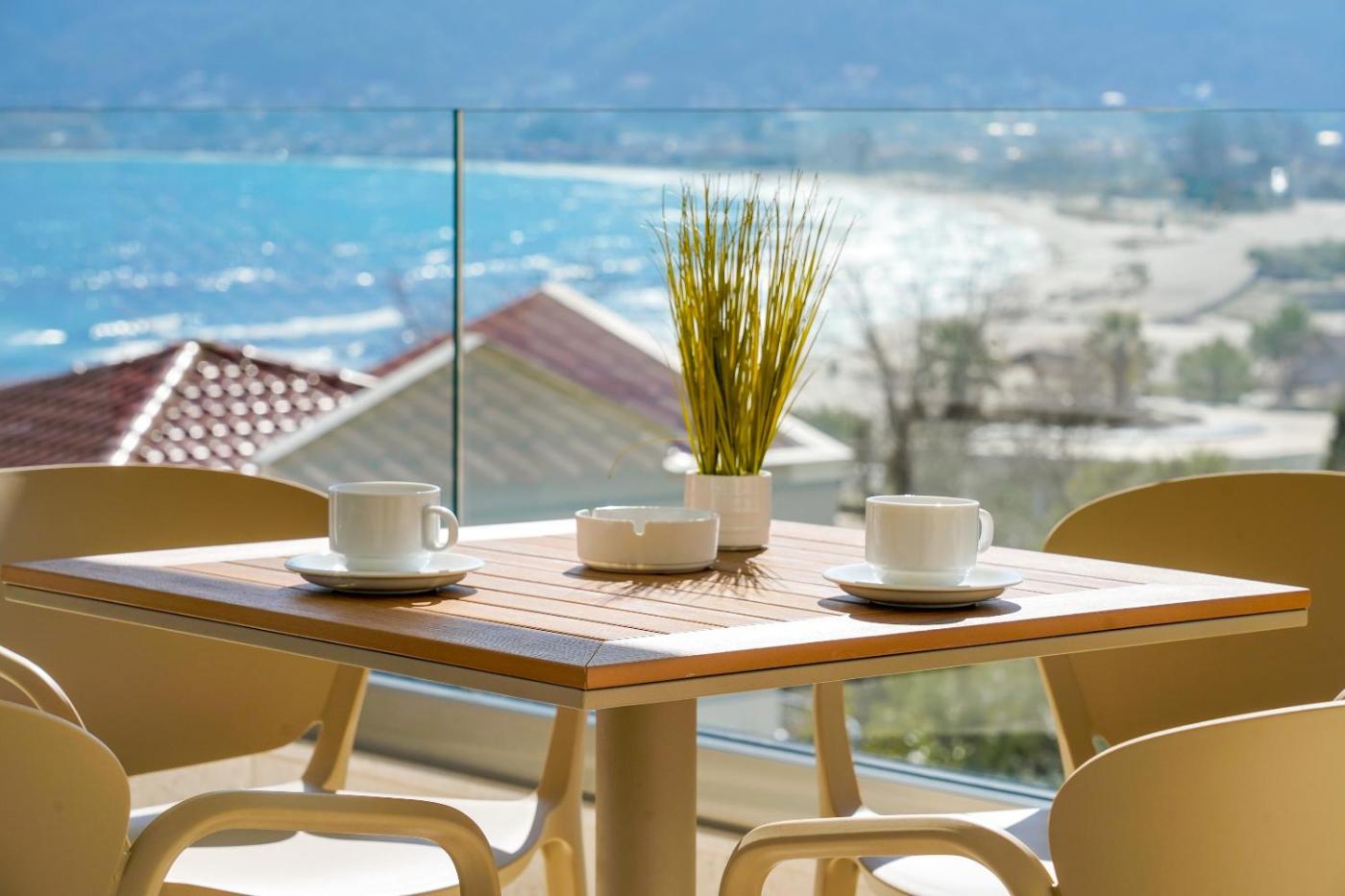 Deluxe Double Room with Sea View. The well-equipped kitchenette features a stovetop, a refrigerator, kitchenware and a toaster. This air-conditioned double room includes a flat-screen TV with streaming services, a private bathroom as well as a balcony with sea views. The unit offers 2 beds. ;