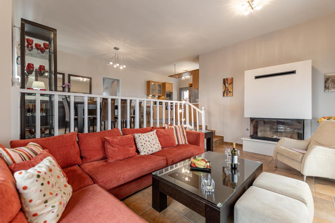 Superior Villa. The hot tub and fireplace are the standout features of this villa. Boasting a private entrance, this air-conditioned villa features 1 living room, 4 separate bedrooms and 2 bathrooms with a bath and a shower. Guests will find a stovetop, a refrigerator, a dishwasher and kitchenware in the well-fitted kitchen. The villa also comes with a barbecue. Featuring a terrace with sea views, this villa also features a washing machine and a flat-screen TV. The unit has 5 beds. ;