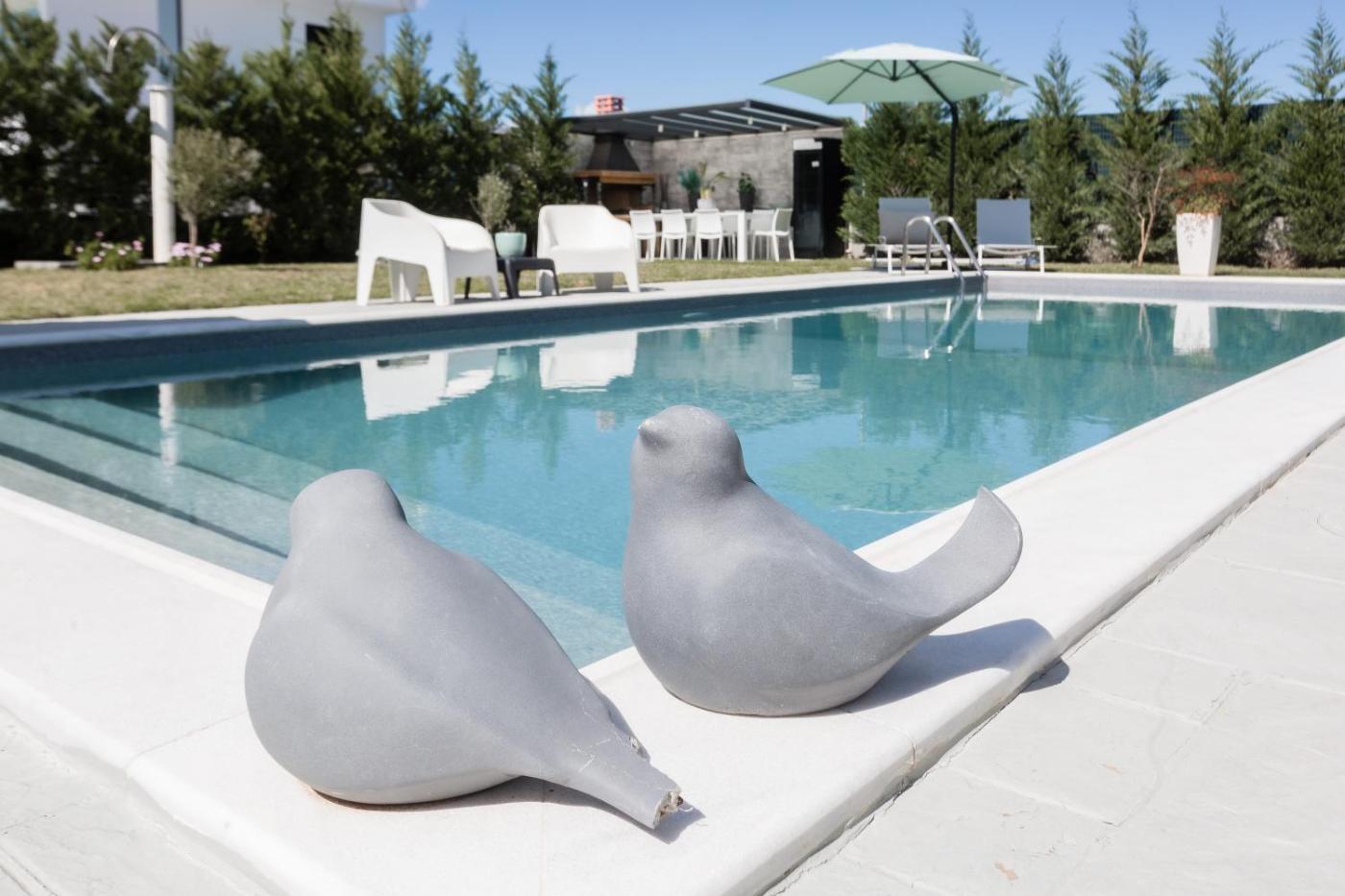 Holiday Home. This holiday homes special features are the private pool and the fireplace. Featuring a private entrance, this air-conditioned holiday home consists of 1 living room, 2 separate bedrooms and 2 bathrooms with a bath and a shower. Guests can make meals in the kitchen that is equipped with a refrigerator, kitchenware, a microwave and a tea and coffee maker. Boasting a terrace with garden views, this holiday home also provides a washing machine and a flat-screen TV. The unit offers 2 beds.