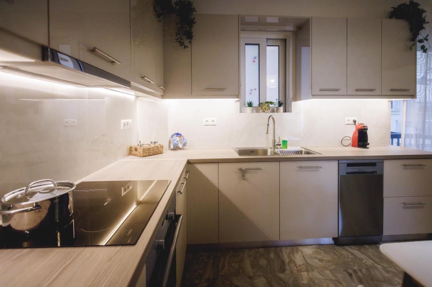 Three-Bedroom Apartment. The well-fitted kitchen features a stovetop, a refrigerator, a dishwasher and kitchenware. The spacious air-conditioned apartment offers a flat-screen TV, a washing machine, a private entrance, a tea and coffee maker as well as garden views. The unit offers 2 beds.