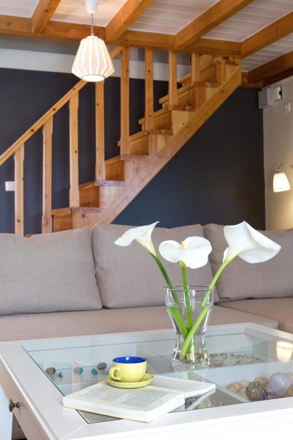 Two-Bedroom House. This holiday homes standout features are the private pool and fireplace. Boasting a private entrance, this air-conditioned holiday home includes 1 living room, 2 separate bedrooms and 2 bathrooms with a walk-in shower and a hairdryer. Guests will find a stovetop, a refrigerator, a dishwasher and kitchenware in the well-equipped kitchen. The holiday home also features a barbecue. The holiday home has parquet floors, a seating area with a flat-screen TV, a washing machine, soundproof walls as well as garden views. The unit has 4 beds.