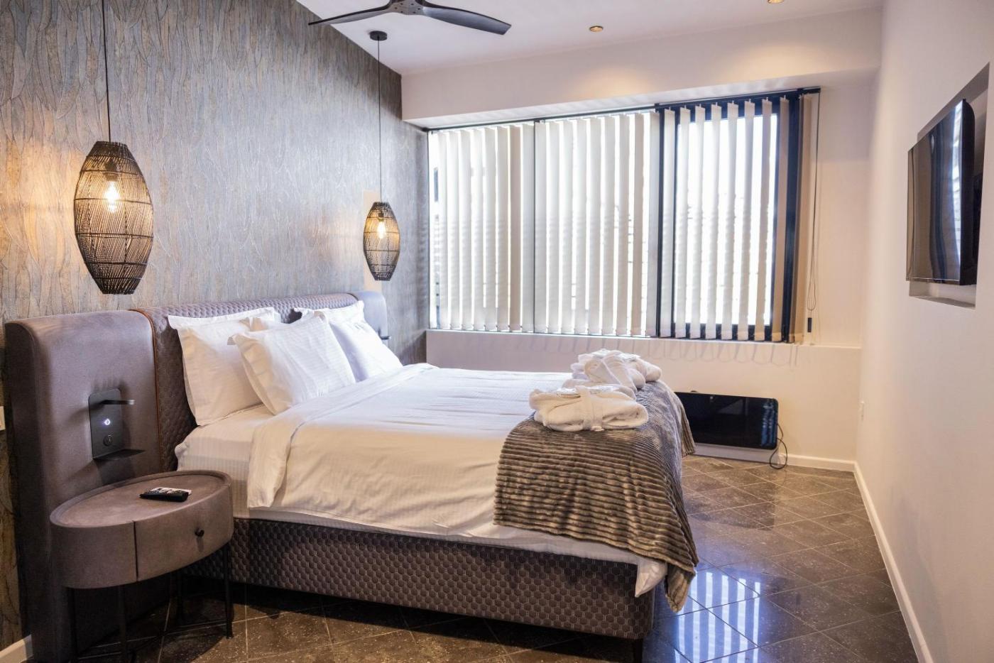 Junior Suite. Featuring a private entrance, this air-conditioned suite comprises a kitchenette, 1 bedroom and 1 bathroom with a shower and a hairdryer. The suites kitchenette, which features a refrigerator and a microwave, is available for cooking and storing food. The suite provides a tea and coffee maker, a safe deposit box, heating, a TV, as well as city views. The unit offers 2 beds. ;